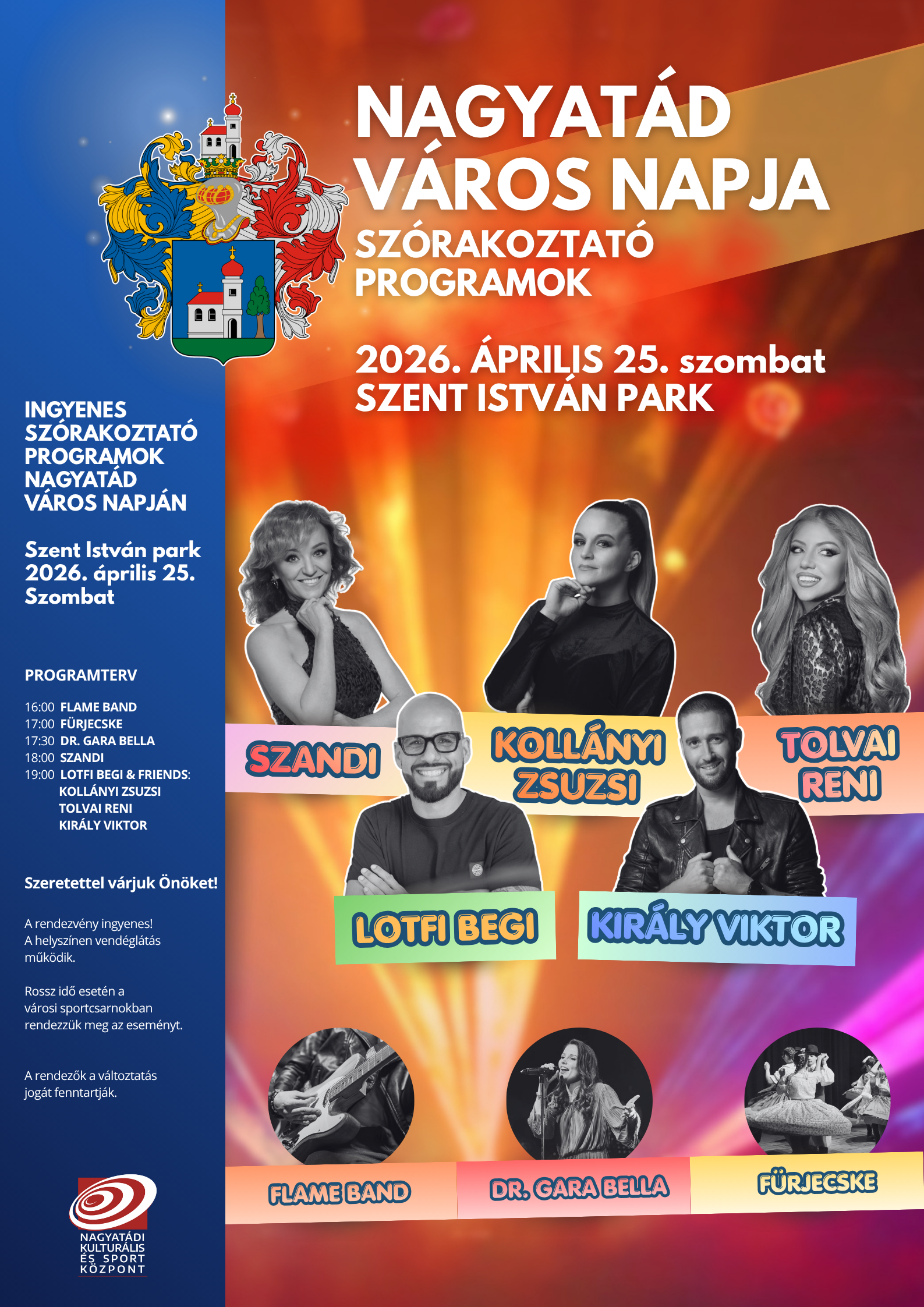Nagyatád Város Önkormányzata szeretettel várja Önöket a Nagyatád Város Napja alkalmából rendezett szórakoztató programokra 2026. április 25-én szombaton a Szent István parkba.