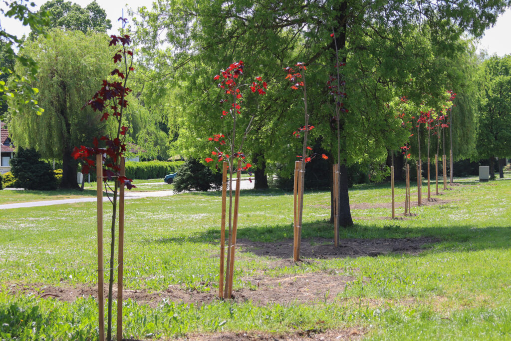 A városi strand parkolójában száraz, beteg és egyúttal balesetveszélyes fákat vágtak ki nemrégiben, ezeket pedig már másnap pótolták.